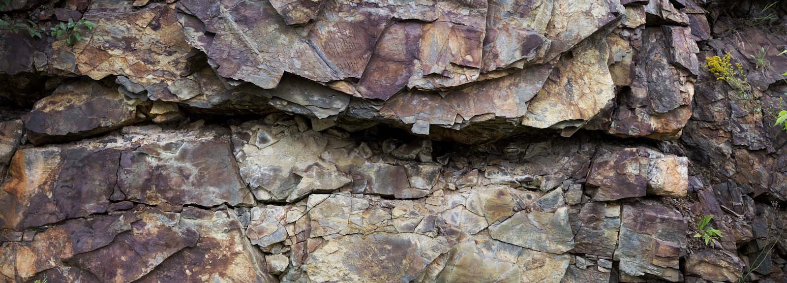 As you drive through Northern Ontario, the Canadian Shield is clearly visible. The building of the highways has revealed some of the planet’s oldest rock formations, bearing the marks of human labour and the impact of dynamite blasting. These rocks carry information ranging from the billions of years of their formation to the annual cycle of plant life clinging to them and even bear the spontaneous human impact of sprayed on graffiti.